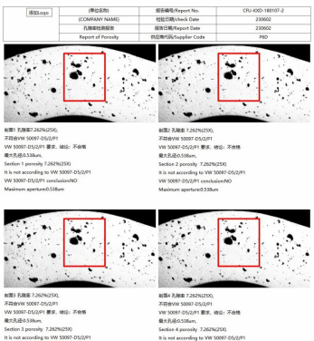 The FKX2025 porosity image analysis system uses microscopic imaging to detect the porosity of automotive parts . It is a porosity measurement system for cast aluminum used in the automotive industry , conforming to Volkswagen's VW50097 and PV6097 standards. The measurement results are accurate and reliable. It is primarily used for analyzing the casting porosity of aluminum alloys and cast iron castings , and is also suitable for porosity analysis and metallographic analysis of other materials.